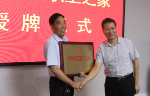 市总工会副主席刘夙凯一行为大地公司“全国模范职工之家”授牌
