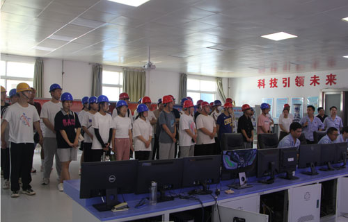 在中控室,中控室主任张向举详细讲解了整个干法水泥生产线的工艺流程,技术原理。随后,河南城建学院师生一行在讲解员的带领下,沿着生产线,近距离了解水泥生产从原料制备到产品出厂的全流程,他们对大地公司先进的技术工艺和装备表现出浓厚的兴趣,不时向工作人员提问请教。