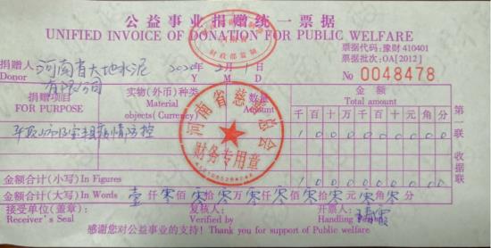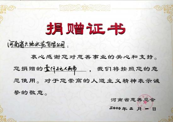 一场突如其来的新型冠状病毒感染的肺炎疫情,打乱了我们正常的生活节凑,新型冠状病毒感染的肺炎疫情还在全国火速蔓延,防疫防控进入关键决战时期,疫情就是命令,责任重于泰山。作为国家大型企业,河南省大地集团于2月1日向河南省慈善总会定向捐赠1000万元,用于平顶山市以及宝丰县的疫情防控工作。 随着新型冠状病毒感染的肺炎疫情蔓延,1月26日,河南省慈善总会紧急启动“防控疫情 共克时艰”慈善项目,同时开展线上线下公开募捐。齐心协力,防控疫情!开云手机官方版在线入口积极响应河南省慈善总会的募捐活动,并高度关注新型冠状病毒感染的肺炎疫情防控工作,全力支持配合疫情防控工作,主动捐助定向资金1000万元人民币。这笔捐款将支援平顶山市和宝丰县的疫情防控工作,用于采购短缺的医疗设备及物资,以及对一线医护人员生活工作条件的改善等,助力早日打赢这场没有硝烟的战役。 河南省大地水泥有限公司位于河南省宝丰县,属国家大型企业,组建于2006年5月,现有员工3000多人。近年来,开云手机官方版在线入口在张彪董事长带领下,全体干部职工团结一致,抢抓机遇,自我加压,坚持绿色发展、多元发展理念,不断壮大,目前已成为一家集建材、发电、酿酒、房地产、文化传媒、酒店、物流为一体的大型企业集团。先后荣获“全国消费者信得过诚信单位” 、“中国水泥熟料产能百强”、平顶山市“星级纳税企业”等30多项荣誉称号。连续12年荣获宝丰县企业纳税首位,2019年共计纳税2.8亿元。通过了质量、环境、职业健康、能源管理四体系认证。 该集团负责人表示:作为一家本土企业,我们深深的感到家乡的厚爱和哺育之情。以感恩之心回报社会是大地集团多年坚持的初心,无论是扶贫、助困还是社会公益,发挥企业应有的担当和社会责任是每个企业应有的义务。我们在做好大地集团疫情防控工作的同时,大力支援全市、全县疫情防控阻击战也是我们应有的担当。