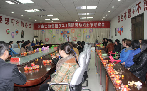 为使广大女工度过一个快乐,有意义的节日,37日下午,大地集团在中控三楼会议室举办“庆三八国际劳动妇女节联欢会”,全厂女职工欢聚一堂,畅所欲言,共同庆祝自己的节日。集团有关领导、工会负责人到会祝贺。