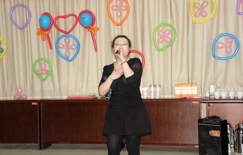 联欢会上,大家纷纷登台表演,歌曲、舞蹈,戏曲等不同形式的表演,博得现场观众一阵阵热烈的掌声、喝彩声。为活跃现场气氛,主持人还穿插了惊喜不断的趣味猜谜有奖环节,令大家兴奋不已。一场别开生面的吹气球比赛,给女同胞带来了不少的惊喜和快乐。大家在轻松愉快的氛围中度过了一个难忘了三八妇女节。