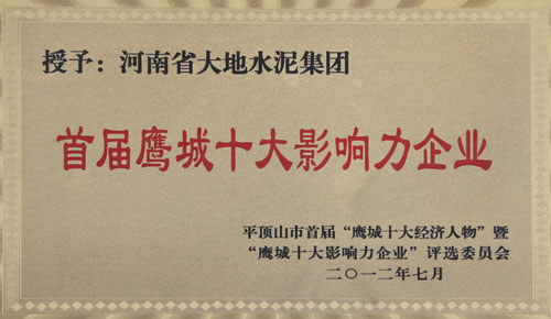 首页 >> 开云(中国) >>资质荣誉 >> 首届鹰城十大影响力企业